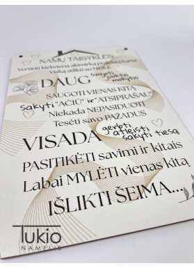 Lentelė „Namų taisyklės“ – tai šilta ir įkvepianti namų interjero detalė, primenanti svarbiausias šeimos vertybes.