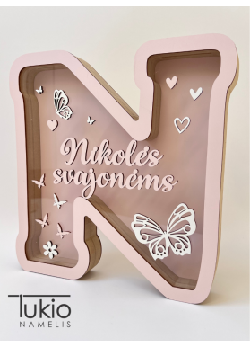 42,00 €Graži, subtili medinė taupyklė "Vardo raidė" dekoruota drugeliais ir kitomis smulkiomis detalėmis, padės greičiau sutaupyti svajonei. Grži dovana mergaitėms gimtadeinio proga.