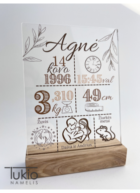 15,00 €Personalizuoti vaikučio gimimo metrikai ant skaidraus akrilo.