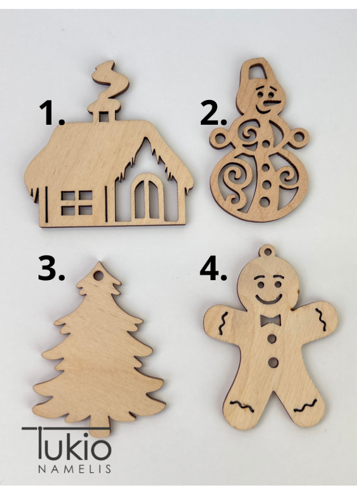 Mediniai kalėdiniai žaisliukai. Puiki simbolinė dovana, kurią vaikai gali originaliai dekoruoti dažais, blizgučiais ar kitomis kūrybinėmis priemonėmis.