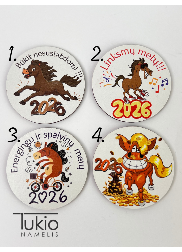 Magnetukai su 2026 metų simboliu – arkliu. Šmaikšti dovana Naujiesiems metams su palinkėjimu.
