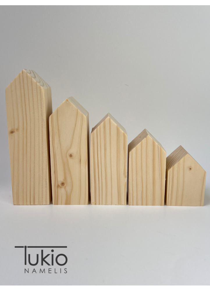Nameliai 4,5x4,5cm dydžio, komplekte 5 skirtingi dydžiai 6cm, 8cm, 10cm, 12cm, 15cm.