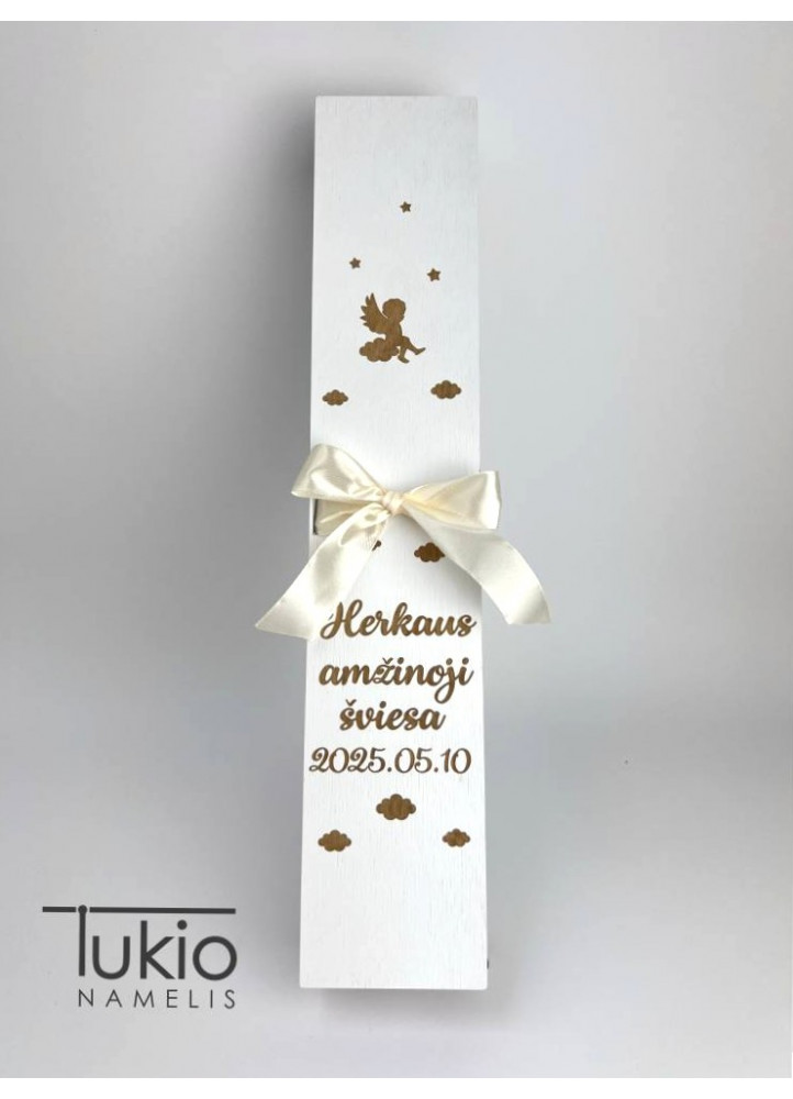 Krikšto žvakutė, neatsiejamas krikštynų šventės atributas. Kad žvakutė būtų visad saugi, rekomenduojame ją laikyti saugiai medinėje dėžutėje.