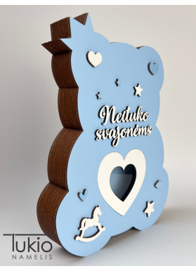 Originali bei miela taupyklė, kuri pradžiugins kiekvieną mažąjį ir paskatins jį taupyti. Tai taip pat gali būti puiki dekoracija vaikučio kambaryje, arba puiki dovana gimtadieniui, krikštynoms ar bet kokiai kitai progai. Taupyklės užrašą pagaminsime pagal jūsų individualų užsakymą bei pasirinktą spalvą