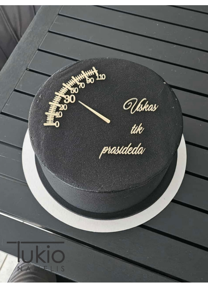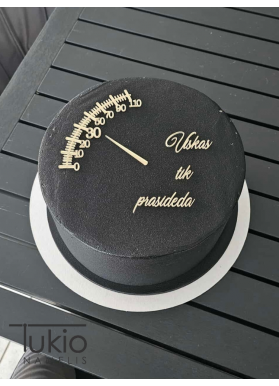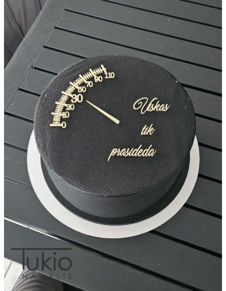 Veidrodinis auksinis torto toperis spidometro formos – išskirtinė torto dekoracija mašinų fanams! Torto dydis 20-25 cm.