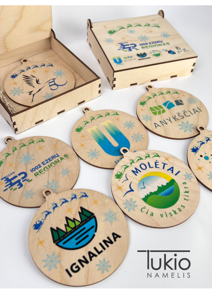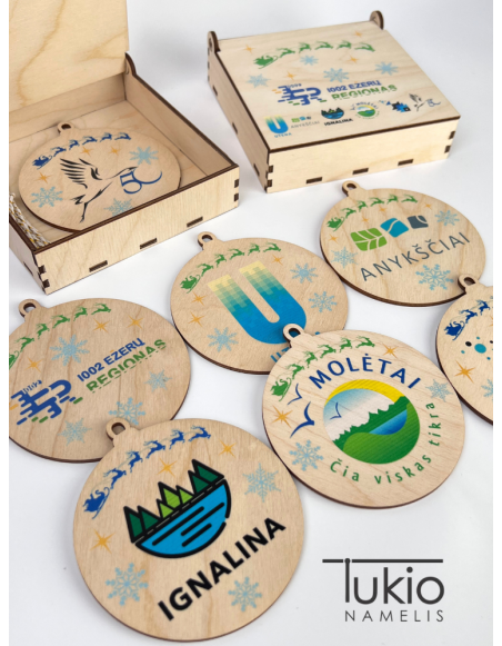 Kiekvienas žaisliukas pagamintas iš kokybiškos medienos, rinkinys atrodytų tvarkingai, prabangiai ir reprezentatyviai. Šis komplektas puikiai tinka dovanoms, šventinėms kampanijoms, reklaminėms akcijoms ar įmonės įvaizdžiui stiprinti.